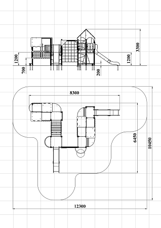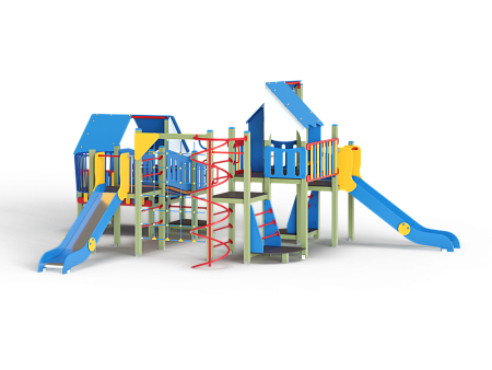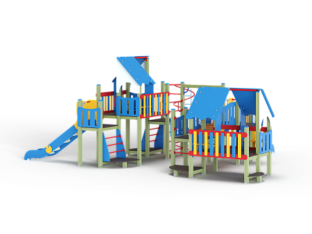 Детский игровой комплекс состоит из шести разновысоких башен и стилизован в цветах службы ДПС. На первой башне установлена лестница, горка, фанерное ограждение и ручки вспомогательные. На второй сдвоенной башне, установлены фанерные ограждения и крыша. На третьей башне установлены фанерное ограждение, шест спираль, лестница и ручки вспомогательные. На четвертой башне установлены горка и балкон. На пятой башне установлено фанерное ограждение, лестница, вспомогательные ручки. На шестой сдвоенной установлены фанерные ограждения и крыша. Третья и четвертая башни соединены сеткой полипропиленовой, четвертая и пятая наклонным мостом с фанерными перилами.