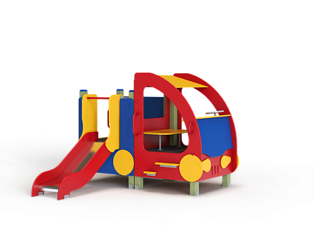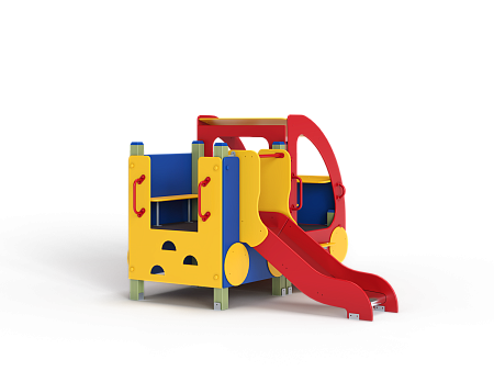 Машина состоит из кабины, кузова, горки ската высотой не менее 700 мм.  Кабина имеет вход с двух сторон и имеет по 2 ступеньки и по 2 вспомогательных ручки с каждой стороны, вращающийся руль и сидение. Кузов - открытая площадка имеет один вход и горку скат. На бортах прикреплены декоративные элементы в виде слесарных инструментов. Вся машина должна быть изготовлена из металла и влагостой-кой фанеры.