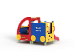 Машина выполнена из фанерных элементов в виде кабины и кузова.  Кабина имеет вход с двух сторон, по две ступеньки и по две ручки с каждой стороны, вращающийся руль и сидение. Кузов - открытая площадка со входом в виде альпинистской стенки и горкой. На бортах кузова прикреплены декоративные элементы в виде слесарных инструментов.