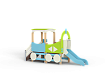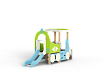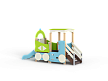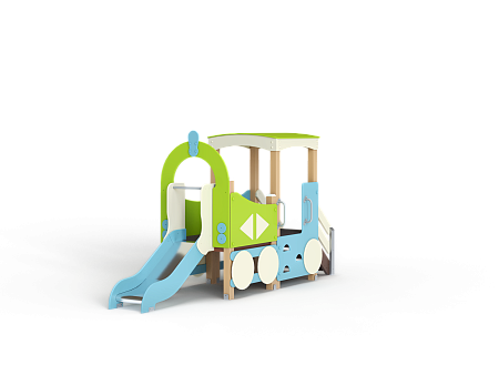 Паровозик состоит из кабины с крышей и лестницей, котла с горкой. Кабина имеет вход в виде альпинистской стенки и лестницы, две вспомогательные ручки, фанерное ограждение и крышу. Котел - открытая площадка с горкой, декоративной аркой и фанерным ограждением с художественным оформлением. Снизу по бокам расположены декоративные колеса.