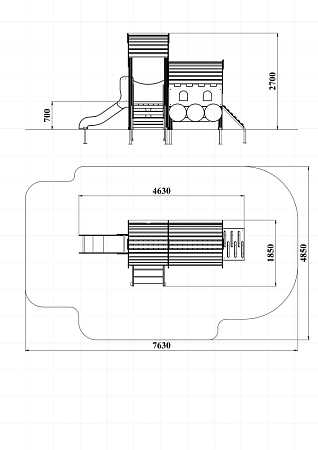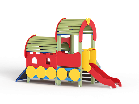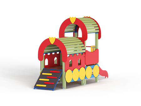 Локомотив состоит из кабины, горки, лестницы и трапа. Кабина имеет вход в виде трапа наклонного и лестницы, две крыши из деревянного бруса с декоративными фанерными арками. На локомотиве располагаются декоративные колеса.