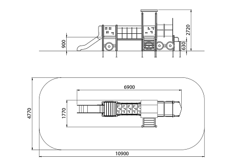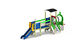 Комплекс скомпонован в форме паровозика с башней и башней в виде вагончика. На башне паровоза установлены лестница, ограждение и крыша. Спереди башня имеет продолжение в виде котла паровоза, выполненного в виде тунеля из прозрачного высокопрочного пластика. На башне вагончика установлены горка и ограждения. Башни соединяет мостик. Детали паровозика и вагончика изготовлены из HPL пластика, тщательно отшлифованного бруса и металлических элементов из стали с оцинкованным покрытием, навес крыши изготовлен из экструдированного высокомолекулярного полиэтилена. Оцинковка металла производится методом электрохимической гальванизации. Скат горки изготовлен из нержавеющей стали. Сетки моста изготовлена из многожильного армированного износостойкого каната.