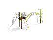 Универсальный комплекс состоит из башни с площадкой, каруселью и гимнастических элементов. Столбы башни выполнены из древесно-полимерного композита (ДПК) диаметром 125 мм, имею профиль с канавками. Все металлические гимнастические элементы и карусель выполнены из стали с оцинкованным покрытием, с антивандальными и безопасными соединениями между собой. Оцинковка металла производится методом электрохимической гальванизации. Сетки и канаты изготовлены из многожильного армированного износостойкого каната. Площадка и сидение карусели выполнены из экструдированного высокомолекулярного полиэтилена.