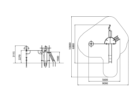Универсальный комплекс состоит из башни с жесткой площадкой и площадкой подвесной, каруселью, горкой и гимнастических элементов. Столбы башни выполнены из древесно-полимерного композита (ДПК) диаметром 125 мм, имею профиль с канавками. Все металлические гимнастические элементы и карусель выполнены из стали с оцинкованным покрытием, с антивандальными и безопасными соединениями между собой. Оцинковка металла производится методом электрохимической гальванизации. Сетки и канаты изготовлены из многожильного армированного износостойкого каната. Площадки и сидение карусели выполнены из экструдированного высокомолекулярного полиэтилена, борта и ограждения горки выполнены из HPL пластика. Скат горки выполнен из нержавеющего металла.