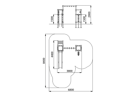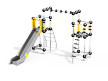 Универсальный комплекс состоит из гимнастического оборудования и двух башен с площадками, соединенных рукоходом. Одна башня с ручками, ступеньками и горкой, вторая башня с ручками и ступенью. Все металлические элементы башен и гимнастического оборудования выполнены из стали с оцинкованным покрытием, с антивандальными и безопасными соединениями между собой. Оцинковка металла производится методом электрохимической гальванизации. Скат горки выпонен из нержавеющей стали. Площадки, ступени, ручки, борта и ограждения горки выполнены из HPL пластика.