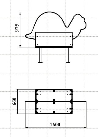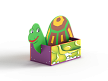 Ящик для хранения игрового инвентаря выполнен в виде веселой черепашки. Создавая функциональное место хранения, он придает игровой площадке яркий вид.