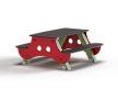 Столик состоит из несущих опор, фанерных сидений, столешницы и фасонных боковых стенок.