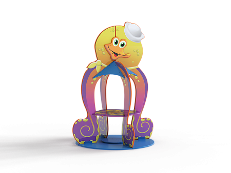 Столик с навесом выполнен из фанеры в форме осьминога с художественно оформленной поверхностью.