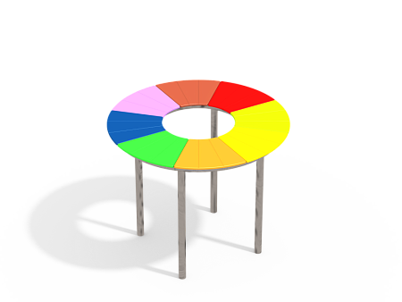 Каркас круглого столика выполнен из стали с оцинкованным покрытием. Оцинковка металла производится методом электрохимической гальванизации. Накладки стола изготовлены из HPL пластика.