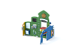 Комплекс состоит из комбинации элементов, выполненых из HPL пластика, в совокупности образующие домик с различным наполнением. Металлические элементы выполнены из стали с оцинкованным покрытием. Оцинковка металла производится методом электрохимической гальванизации.