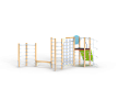Спортивный комплекс состоит из башни на которой установлены наклонная альпинистская стенка, перекладина с канатом, шест спираль, перекладины, баскетбольный щит с кольцом и ручки вспомогательные. Сбоку от комплекса установлены две угловых шведских стенки соединенных между собой бум бревном. Стенки соединены с башней вертикальной полипропиленовой сеткой.