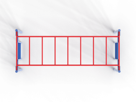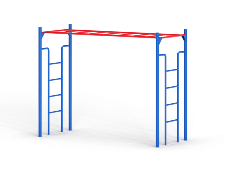 Спортивный комплекс выполнен из металлического каркаса состоящего из трех частей: двух боковых стоек с лестницами и рукохода.