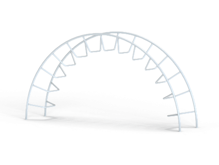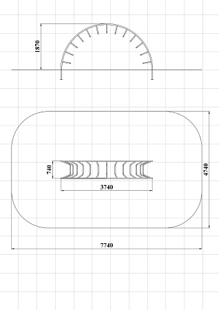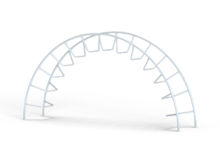 Спортивный комплекс выполен в виде дугообразного металлокаркаса с изогнутыми ступенями.