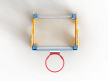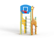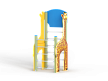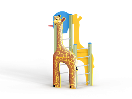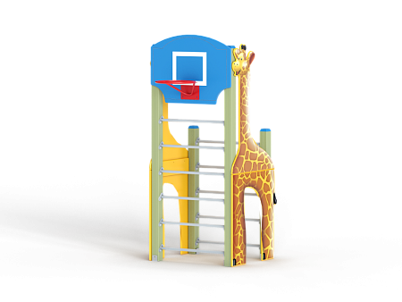 Спортивный комплекс состоит из столбов с перекладинами между ними, фанерных стенок с ручной художественной росписью в виде жирафа и баскетбольного щита с кольцом.