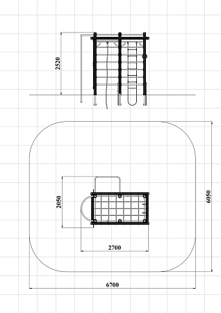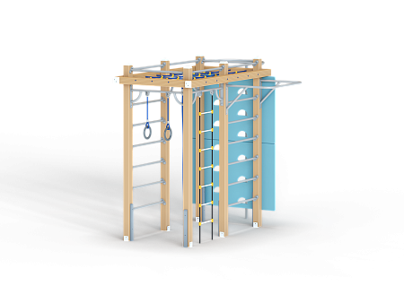 Спортивный комплекс оборудован шестом, шведскими стенками, кольцами гимнастическими, канатом, лестницей полипропиленовой, горизонтальной сеткой полипропиленоыой, двумя альпинисткими стенками, перекладинами и турником приставным.