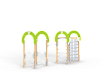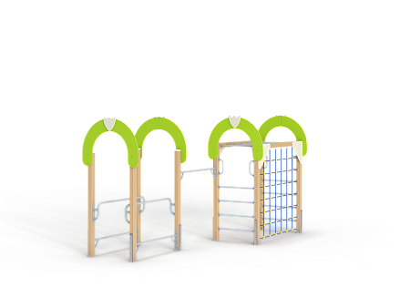 Спортивный комплекс оборудован рукоходом, четырьмя фанерными декоративными арками, шведскими стенками, брусьями межстолбовыми, перекладинами, сеткой полипропиленовой вертикальной и ручками вспомогательными.