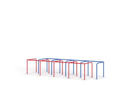 Спортивный комплекс выполнен из металлического каркаса, в форме лабиринта.