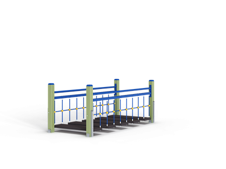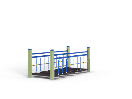 Спортивный комплекс состоит из подвесного качающегося моста, установленного на четырех несущих столбах.