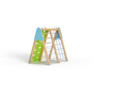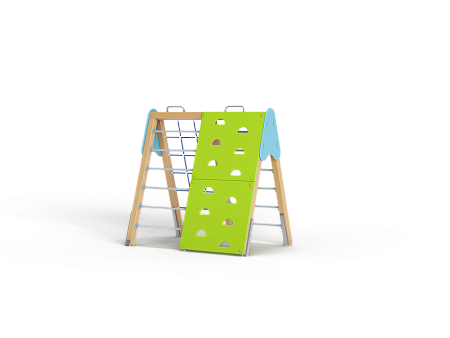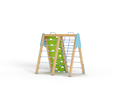 Спортивный комплекс состоит из наклонной полипропиленовой сетки, ручек вспомогательных, двух наклонных шведских стенок и двух наклонных альпинистских стенок, крепящихся на несущие столбы.