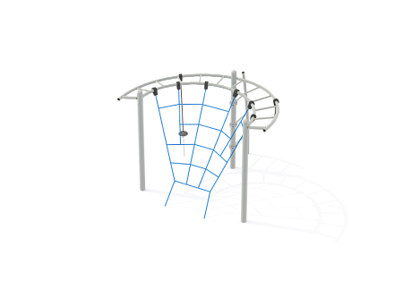 Универсальный комплекс состоит из четырех башен с площадками, соединенных между собой сеткой, радиусным мостом и подвесным мостом. На трех башнях установлена крыша. Столбы башен покрыты в два слоя порошковой полимерной краской. Все металлические гимнастические элементы выполнены из стали с оцинкованным покрытием, с антивандальными и безопасными соединениями между собой. Оцинковка металла производится методом электрохимической гальванизации. Скат горки выполнен из нержавеющей стали. Сетки и канаты изготовлены из многожильного армированного износостойкого каната. Площадка радиусного моста и ступени подвесного моста выполнены из экструдированного высокомолекулярного полиэтилена. Площадки башен, ограждения башен, борта и ограждения горки выполнены из HPL пластика.