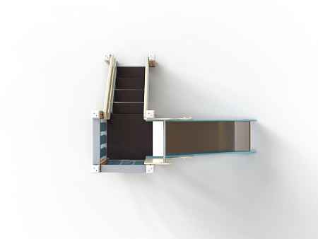 Комплекс состоит из башни с горкой с высотой ската 900 мм, лестницы и двух ограждений из бруса.