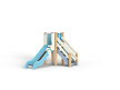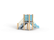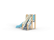 Комплекс состоит из башни с горкой с высотой ската 900 мм, лестницы и двух ограждений из бруса.