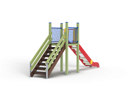 Комплекс состоит из башни с горкой с высотой ската 1500 мм, лестницы и двух металлических ограждений