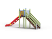 Комплекс состоит из башни с горкой с высотой ската 1500 мм, лестницы и двух металлических ограждений