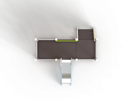 Манеж состоит из башни с горкой с высотой ската 700 мм, лестницы, металлических перекладин и фанерного ограждения.