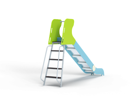 Горка состиоит из ската высотой 1500 мм и металлической лестницы со ступенями и площадкой из влагостойкой противоскользящей ламинированной фанеры.