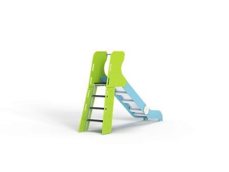 Горка состиоит из ската высотой 1200 мм, металлической лестницы с фанерными перилами с ступенями и площадкой из влагостойкой противоскользящей ламинированной фанеры.
