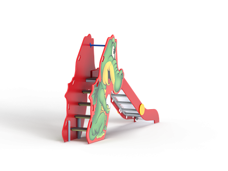 Горка с высотой ската 1200 мм имеет перила в виде дракончика с ручной художественной росписью.