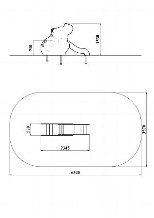 Горка с высотой ската 700 мм имеет перила в виде слоненка с ручной художественной росписью.
