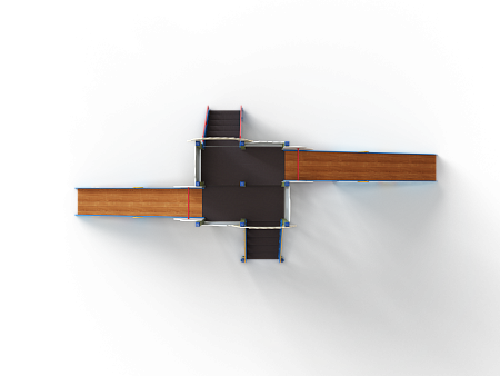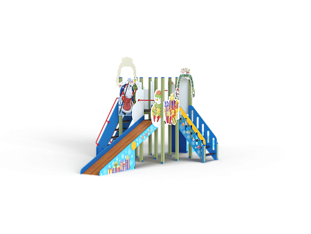 Комплекс состоит из башен с двумя зимними горками с высотой ската 1500 и 1800 мм, двух лестниц, декоративных арок и фанерных ограждений. Комплекс стилизован в новогодней тематике с ручной художественной росписью и устанавливается с помощью металлических опорных каркасов.