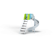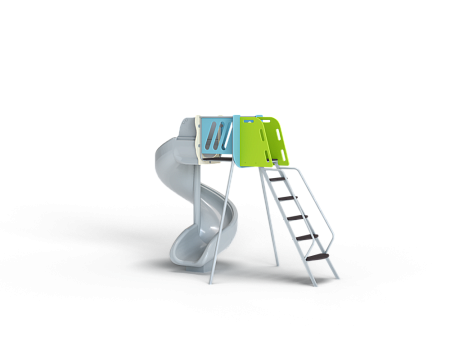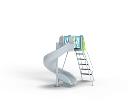 Горка пластиковая винтовая, высота ската 1800 мм. Оборудована лестницей, мостиком и опорными металлическими стойками.