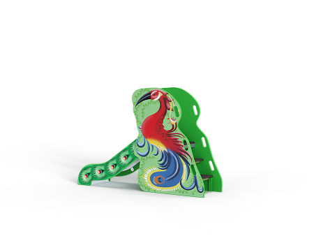Горка с высотой ската 700 мм имеет перила в виде птицы с ручной художественной росписью.