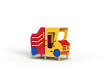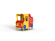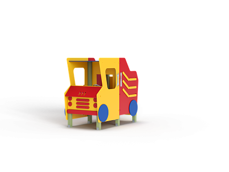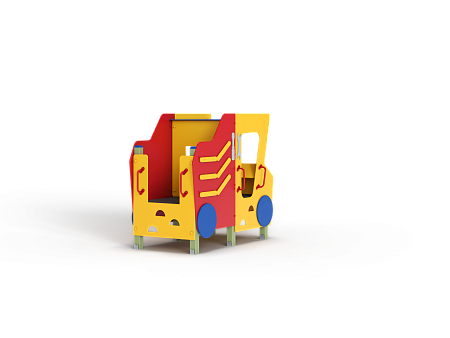 Самосвал состоит из крыши, ограждений в виде деталей кузова самосвала, лавочки, руля, ручек и декоративных фанерных элементов.