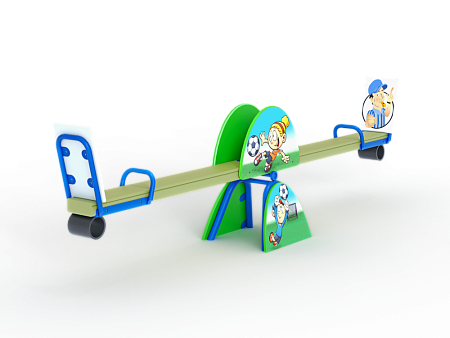 Качалка-балансир состоит из деревянного бруса, который крепится болтовым соединением на металлическом основании, качение производится с помощью подшипников качения. По краям деревянного бруса установлены металличесие каркасы сидения с фанерными спинками с художественным оформлением в футбольной тематике и амортизирующие демпфера из армированной резины. По бокам металлического основания и по бокам бруса (в центре) крепятся декоративные фанерные накладки с художественным оформлением в футбольной тематике.