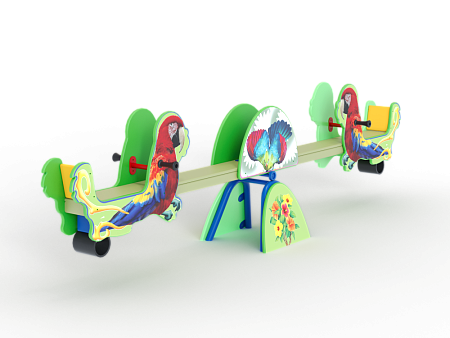 Качалка-балансир состоит из деревянного бруса, который крепится болтовым соединением на металлическом основании, качение производится с помощью подшипников качения. По краям деревянного бруса установлены фанерные накладки в форме птиц с художественным оформлением, с фанерными спинками и амортизирующие демпфера из армированной резины. По бокам металлического основания и по бокам бруса (в центре) крепятся декоративные фанерные накладки с художественным оформлением.