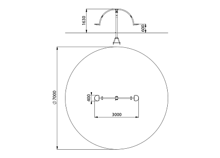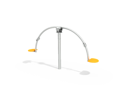 Качалка-карусель состоит из металлического дугообразного коромысла с сидениями по краям и центральной несущей стойки. Коромысло крепится болтовым соединением к особому не разрушаемому шарниру, который в свою очередь крепится к несущей стойке. Качение производится при помощи особого шарнира, а вращение вокруг своей оси производится с помощью подшипников установленных в несущей стойке. При работе шарнира исключены места трения металлических компонентов шарнира, что в свою очередь влияет на долговечность, сокращает эксплуатационные расходы и позволяет шарниру работать практически без шума. Все металлические элементы выполнены из стали с оцинкованным покрытием. Оцинковка металла производится методом электрохимической гальванизации.