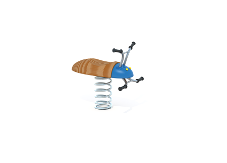 Качалка выполнена в виде жучка с ручками и подножками, раскачивающегося на пружине. Ручки и подножки выполнены из стали. Жук изготовлен из тщательно отшлифованной древесины высочайшей прочности.