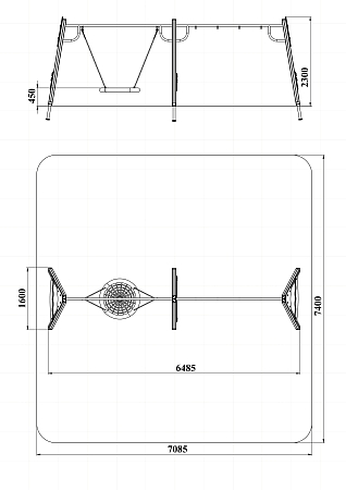 Качели состоят из четырех деревянных столбов, крепежных фанерных накладок и перекладины с прорезиненым подвесом из полипропиленового каната, сплетенного в виде гнезда.