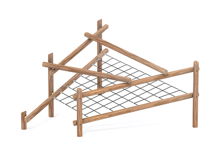 Первый - деревянные столбы и брёвна выполнены из лиственницы, имеют естественную природную форму, тщательно отшлифованы и обладают высочайшей прочностью.