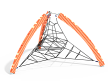 Универсальный комплекс состоит из трех изогнутых деревянных стоек с треугольной трехмерной сеткой, растянутой между ними. Все металлические элементы выполнены из стали с оцинкованным покрытием. Оцинковка металла производится методом электрохимической гальванизации. Деревянные стойки выполнены из тщательно отшлифованной древесины высочайшей прочности и окрашены высококачественным лаковым покрытием. Сетки изготовлены из многожильного армированного износостойкого каната.