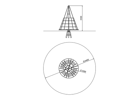 Карусель веревочная состоит из металлического каркаса, колпака и кольца из стали с оцинкованным покрытием, площадки и канатного обвеса. Канаты изготовлены из многожильного армированного износостойкого каната. Оцинковка металла производится методом электрохимической гальванизации. Пол выполнен из экструдированного высокомолекулярного полиэтилена.