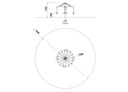 Карусель веревочная состоит из металлического каркаса, окрашенного порошковой полимерной краской, прорезиненного кольца, канатных стяжек и круглых подвесных сидений. Канаты изготовлены из многожильного армированного износостойкого каната..