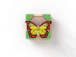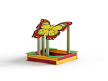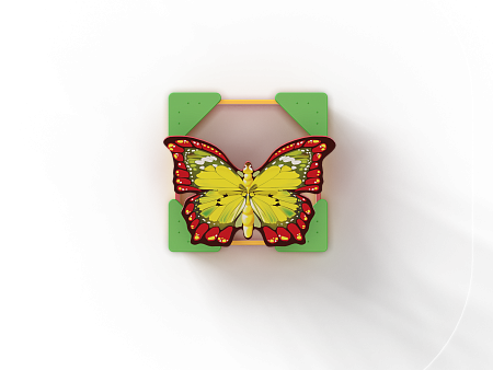 Песочница выполнена из бруса и угловых фанерных накладок, скрепленных между собой при помощи металлических закладных стоек. Внутри песочницы установлен фанерный навес в форме бабочки с художественным оформлением.