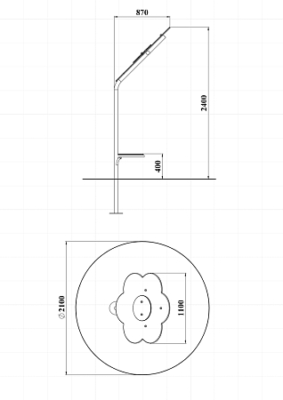 Козырек выполнен из металлической стойки, фанерного навеса в виде ромашки с декоративной фанерной накладкой и фанерного круглого столика.