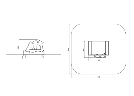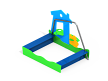 Песочница выполнена в виде избушки с бортами из HPL пластика и нержавеющего металла.
