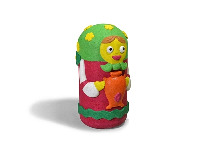 Матрешка высотой 900 мм представляет собой конструкцию, основой которой является бетонная модель, по всей площади покрытая слоем цветной искусственной каучуковой TPV крошки, образуя форму и расцветку матрешки